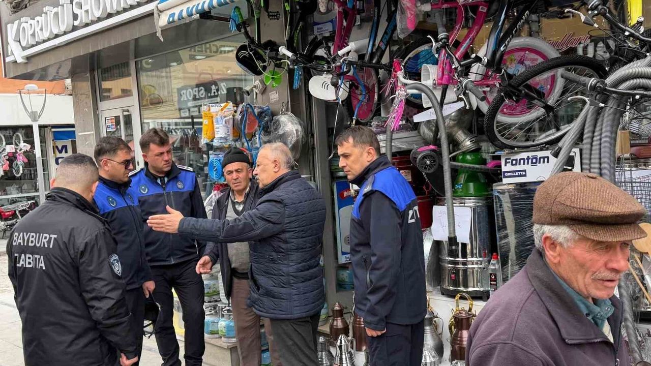 Bayburt Belediyesi Zabıta Müdürlüğü ekipleri, kent genelinde kaldırım işgallerine yönelik denetimlerini sürdürüyor.
