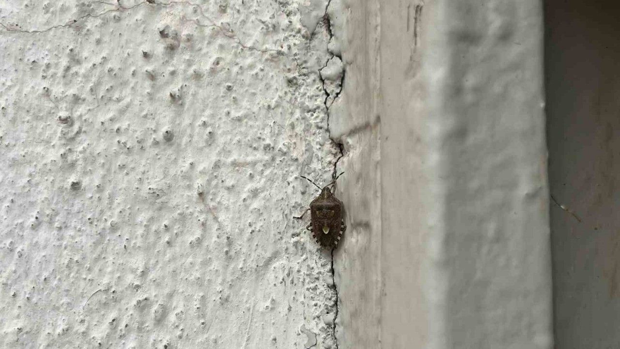 Şingah Mahallesi’nde bir binanın duvarında fark edilen böceğin, kokarca böceği olduğu belirlendi. Sonbahar aylarında sıcak yer arayışına giren bu tür, kışlamak için ev ve binaların iç kısımlarına sığınıyor.