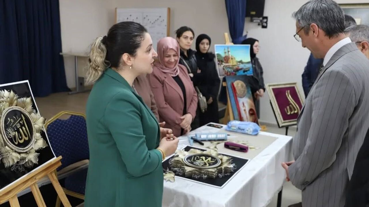 Türkiye Yüzyılı Maarif Modeli Erdem-Değer-Eylem Modeli kapsamında hazırlanan sergide hat, tezhip, ebru ve çeşitli el sanatları çalışmaları yer aldı. Sevgi, merhamet, adalet, sabır ve şefkat gibi değerlerin sanat yoluyla yansıtıldığı eserler, ziyaretçilerin beğenisine sunuldu.