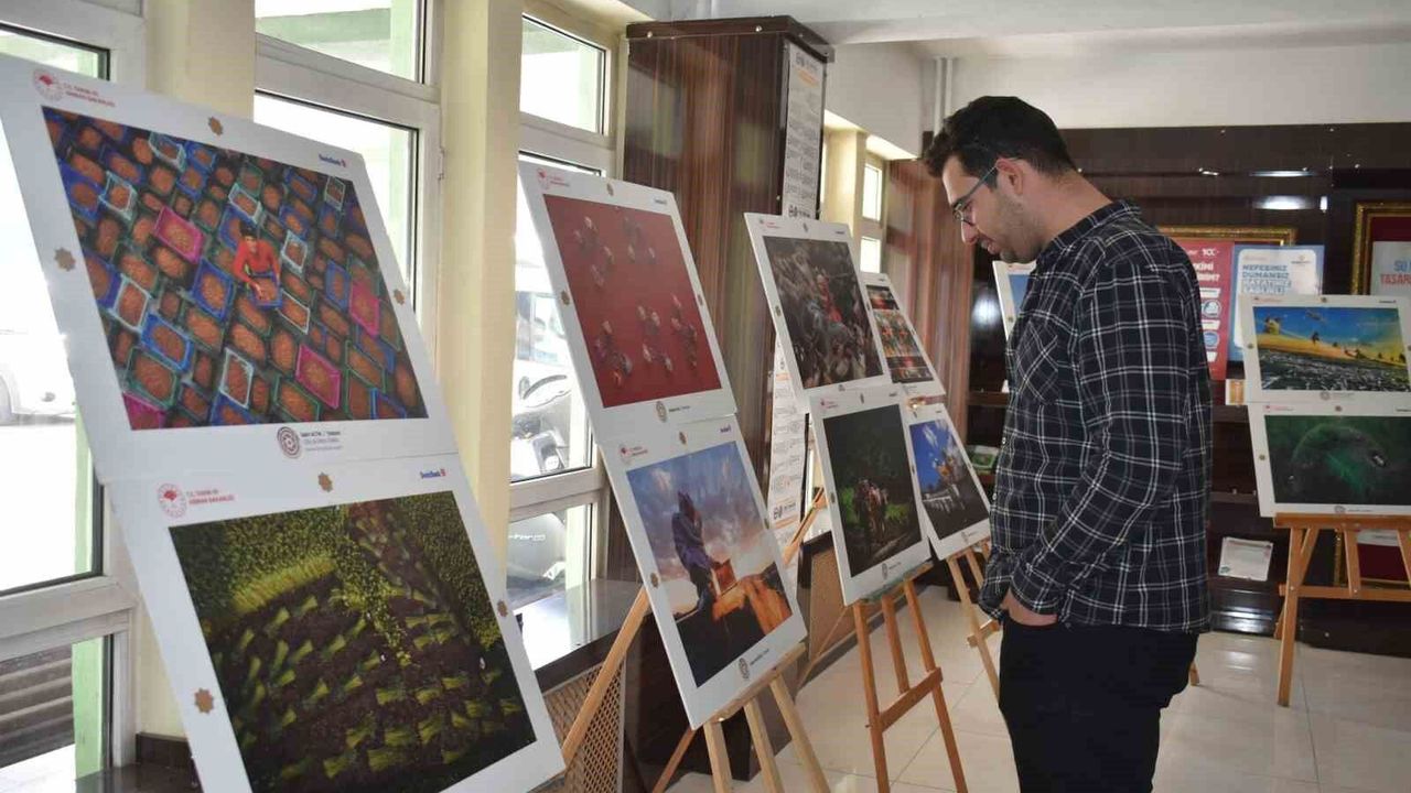 Tarım, orman ve insan temasını yansıtan fotoğrafların yer aldığı sergide, yarışmada dereceye giren ve sergilenmeye hak kazanan eserler ziyaretçilerin beğenisine sunuldu.