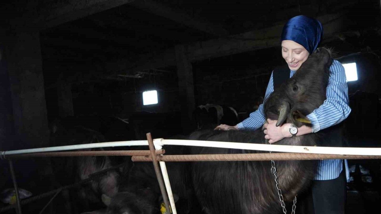Bayburtlu genç kadın girişimci Şafak Eraslan, devletten aldığı 100 bin liralık hibe desteğiyle manda çiftliği kurarak hem üretime katıldı, hem de ev ekonomisine katkı sağladı.