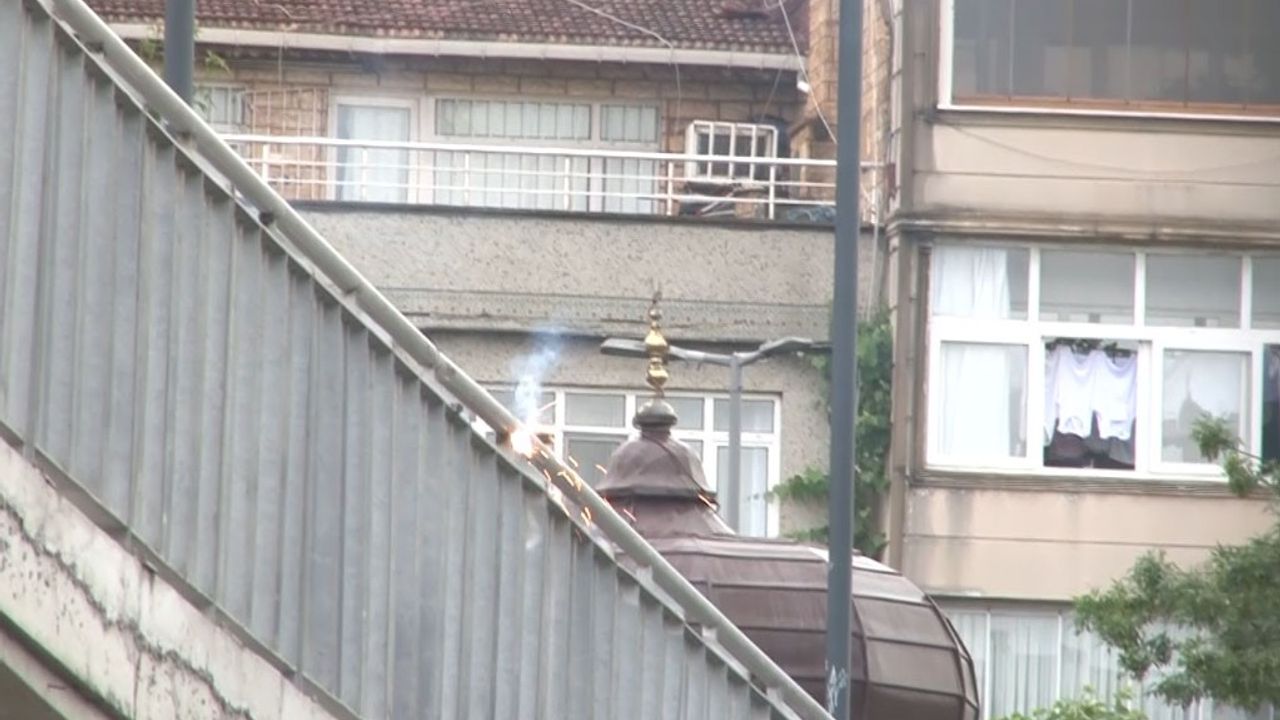 Bayrampaşa’daki Maltepe Metro istasyonunda bulunan üst geçit, geçtiğimiz yıl İBB tarafından tamamlanarak vatandaşların kullanımına açılmıştı. O-3 Otoyolu Bayrampaşa ve Eyüpsultan ilçelerinin sınırındaki bu metro istasyonunda, üst geçit köprüsündeki akan trafiğe aldırış edilmeden kaynak işlemi yapıldı. Kaynaktan sıçrayan kıvılcımlar, trafikte seyir halinde olan araçlara isabet etti. Çevredeki vatandaşlar hiçbir önlem alınmadan yapılan işleme tepki gösterdi. Üst geçit korkuluklarının kaynak edildiği anlar ise kameralara yansıdı.