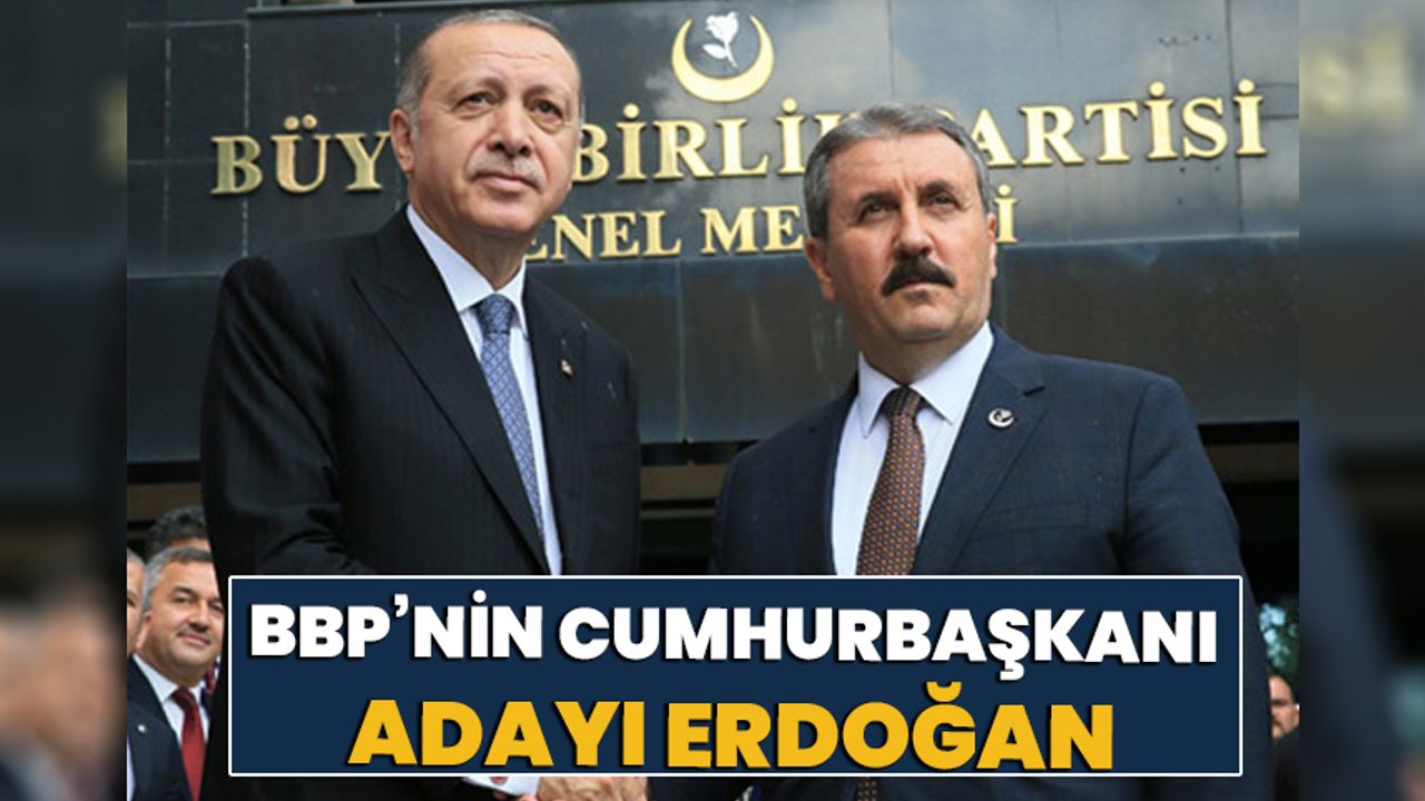 Büyük Birlik Partisi'nin (BBP) cumhurbaşkanı adayı Recep Tayyip Erdoğan oldu. BBP Merkez Karar Yönetim Kurulu oy birliği ile karar aldı.