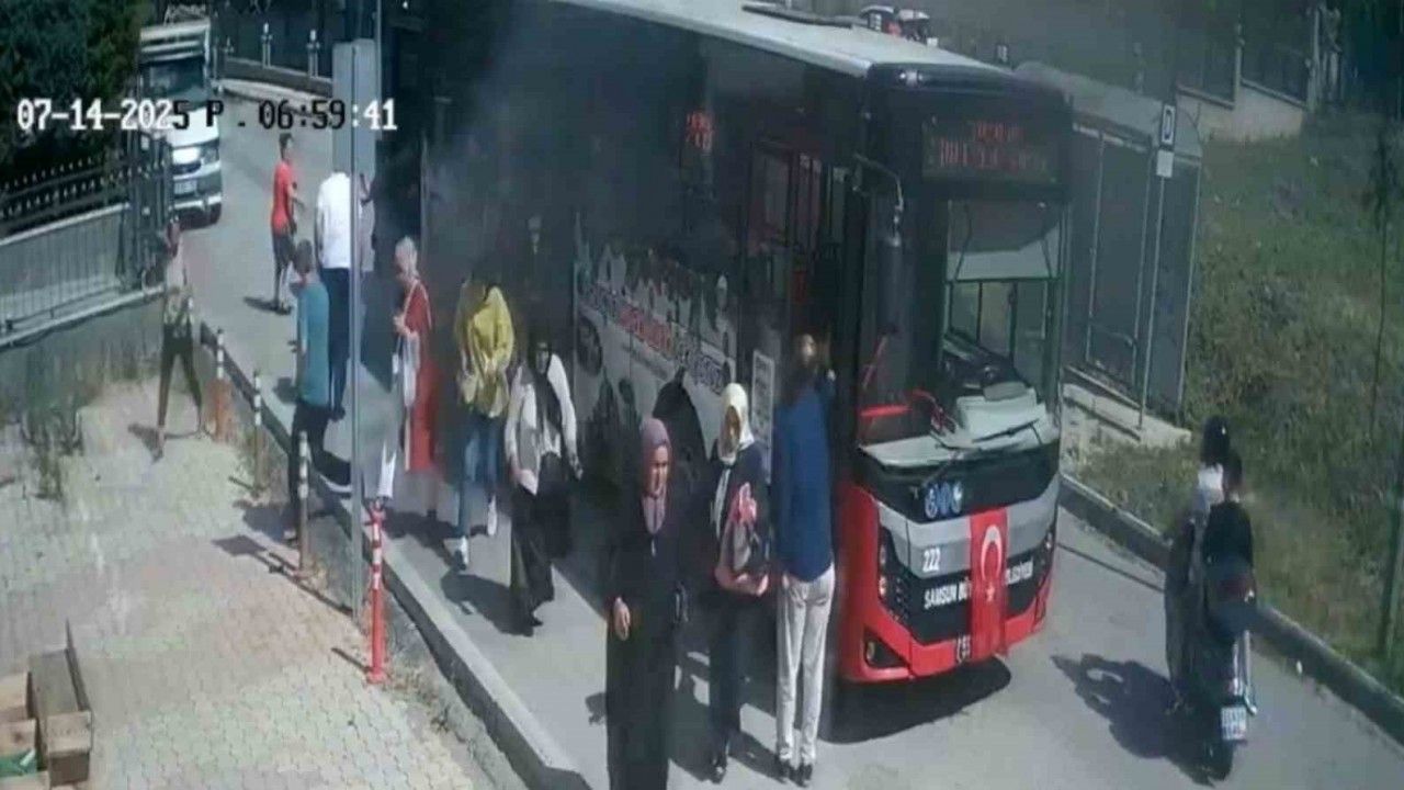 Samsun’un Atakum ilçesinde belediye otobüsünün alev aldığı ve yolcuların panikle kaçıştığı anlar kameraya yansıdı.