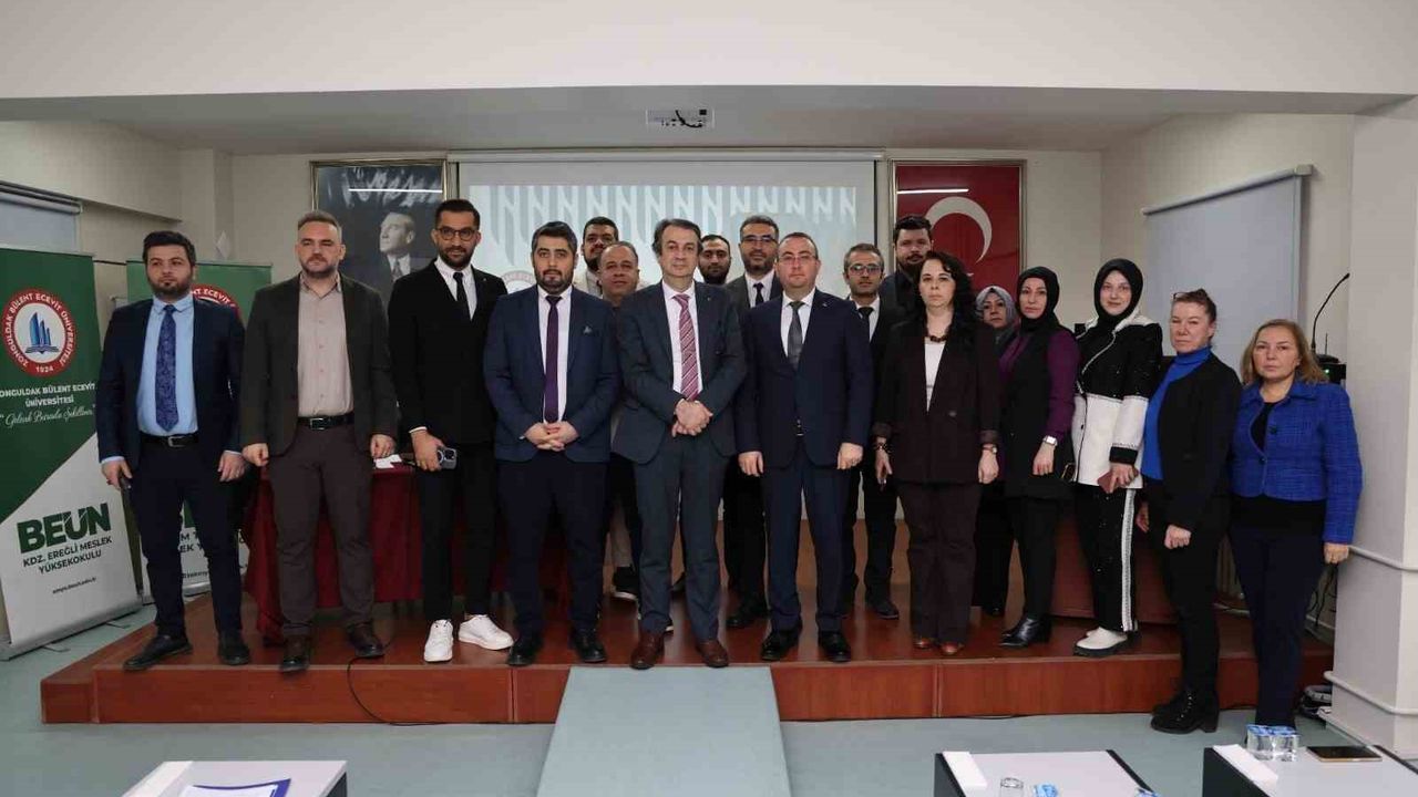 Karadeniz Ereğli Meslek Yüksekokulu ile Bilişim Teknolojileri Meslek Yüksekokulu 2025-2026 Akademik Yılı Akademik Kurul Toplantısı, BEUN Rektör Yardımcısı Prof. Dr. Şenol Hakan Kutoğlu'nun ulusal ve uluslararası indekslerde yayımlanan bilimsel çalışmalarıyla öne çıkan akademisyenlere teşekkür belgelerini takdim etmesi ve hatıra fotoğrafı çekimiyle sona erdi.