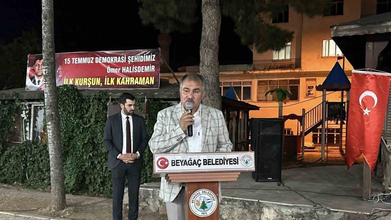Beyağaç Belediye Başkanı Sezayi Pütün, anma programında yaptığı konuşmada; "Devlet, Bayrak, Vatan ve Millet aşkıyla; aynı inanç ve heyecanla Beyağaç 15 Temmuz Demokrasi Şehitleri Meydanı’ndayız. 15 Temmuz Demokrasi ve Millî Birlik Günü’nde Aziz şehitlerimizi rahmet ve minnetle anıyor, ruhlarının şad, mekânlarının cennet olmasını diliyoruz. Kahraman gazilerimize şükranlarımızı sunuyoruz" ifadelerini kullandı.