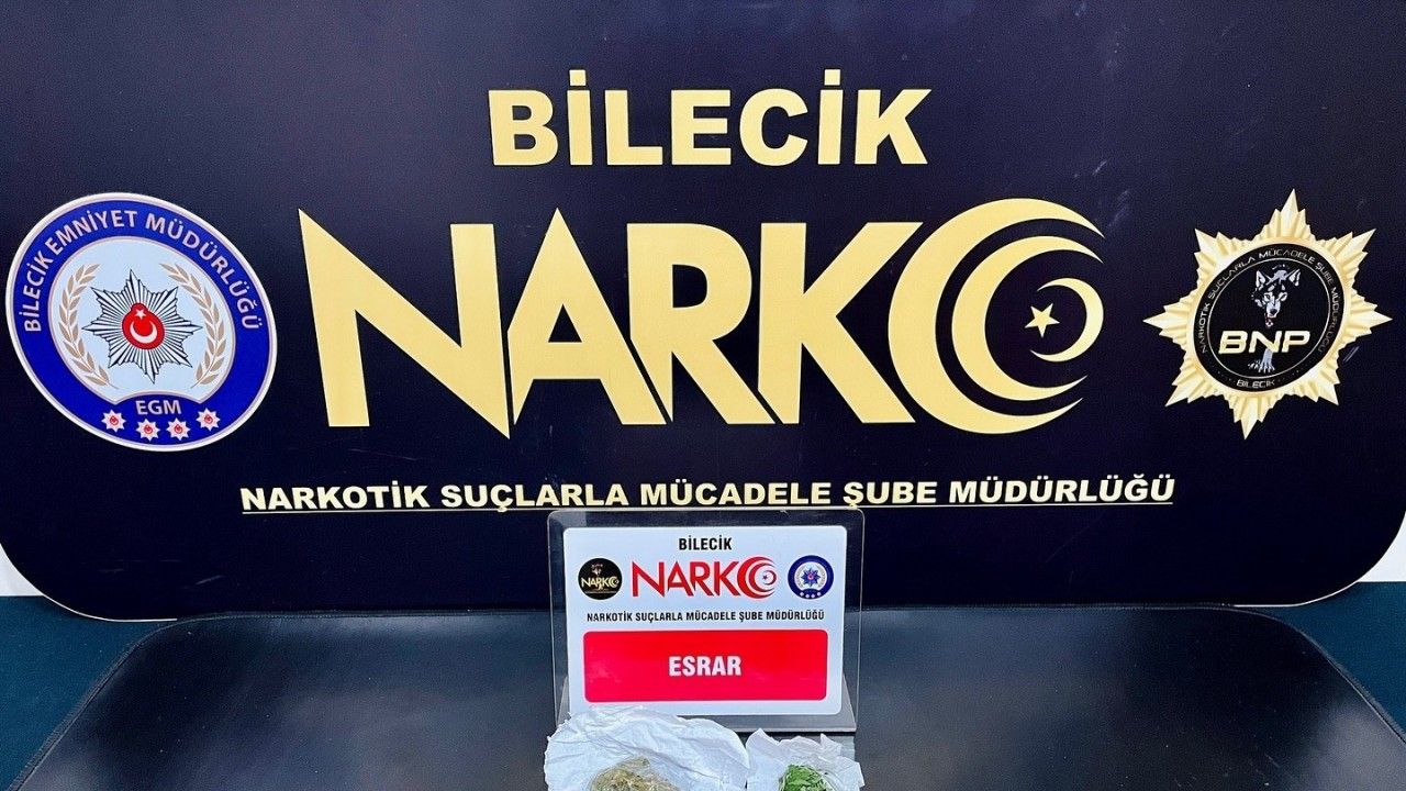 Bilecik İl Emniyet Müdürlüğü Narkotik Suçlarla Mücadele Şube Müdürlüğü ekipleri, kent genelinde yürüttükleri operasyon kapsamında, muhtelif miktarda esrar maddesi ele geçirdi. Operasyon sonucunda 2 şüpheli şahıs yakalanarak gözaltına alındı. Şahıslar hakkında adli işlem başlatıldı. Emniyet yetkilileri, uyuşturucu ile mücadele çalışmalarının kararlılıkla devam edeceğini ve vatandaşları bu tür maddelerden uzak durmaları konusunda uyardıklarını bildirdi.