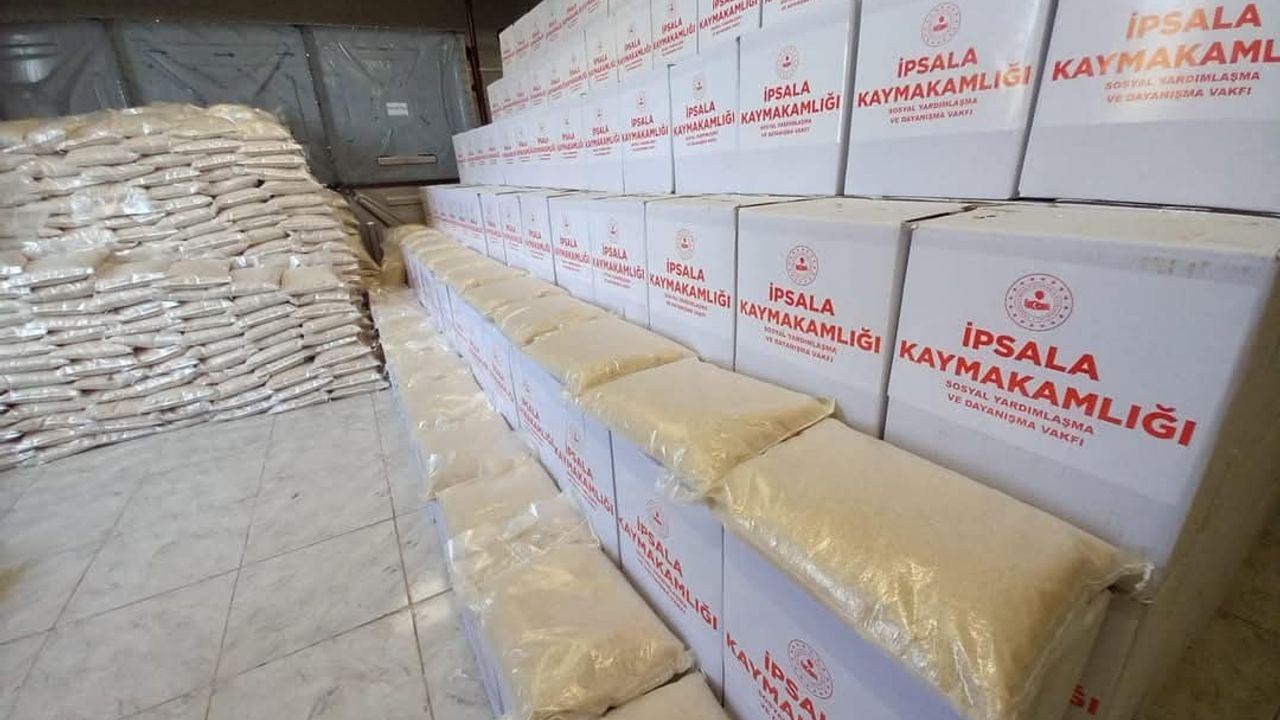 İpsala Kaymakamlığı tarafından yapılan açıklamada, "Koliler ve pirinçler, İpsala Kaymakamlığımız ve hayırsever vatandaşlarımızın destekleriyle temin edilmiştir" denildi.