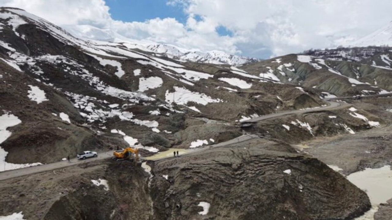Bingöl'de heyelan sonucu çöken ve kayan grup yolunda ekiplerin çalışması başladı.