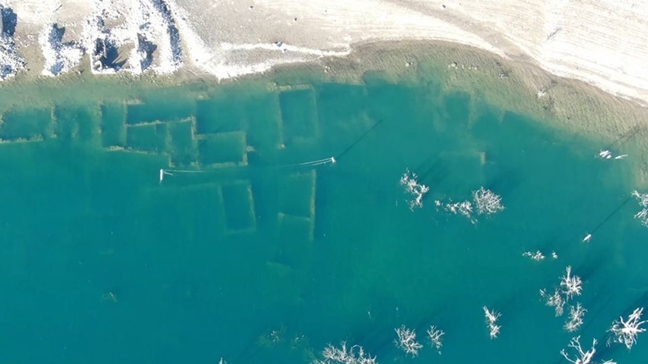 Sivas'ta kuraklık nedeniyle Pusat Barajı'nın suyu çekildi. Suyun azalmasıyla ortaya çıkan eski Pusat köyü, yıllar sonra kar altında kaldı.