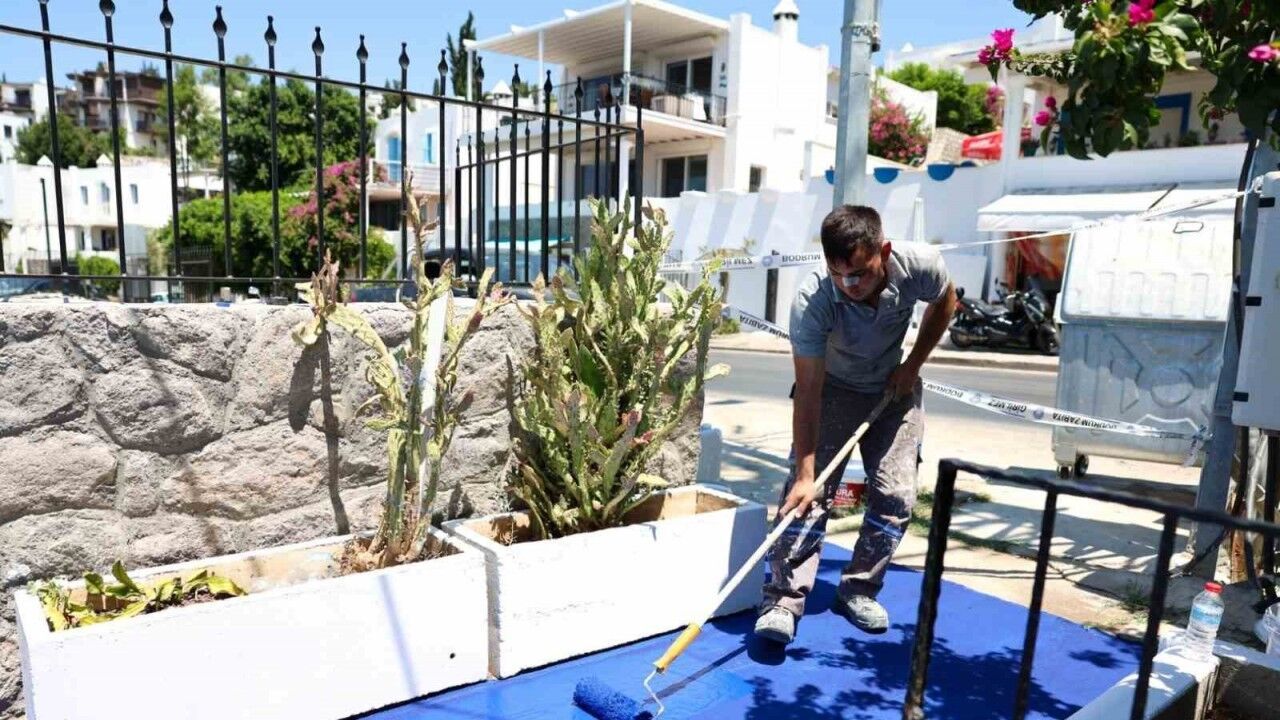 Belediye ekipleri, kent estetiğine katkı sağlamak ve toplumsal farkındalık oluşturmak amacıyla Bodrum’da "Farkındalık Sokakları" oluşturuyor. Bodrum’un simgesi haline gelen mavi ve beyaz, kentin çeşitli noktalarına uygulanıyor.