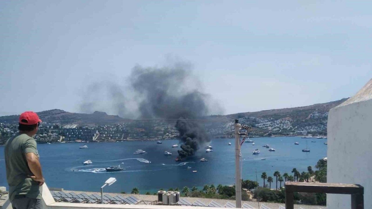 Muğla’nın Bodrum ilçesi Gündoğan Koyu’nda, demirli bir teknede henüz belirlenemeyen nedenle yangın çıktı. Tekne kısa sürede alev topuna dönerken, içeride bulunan 1 kişi çevredeki botlar yardımıyla kurtarıldı.