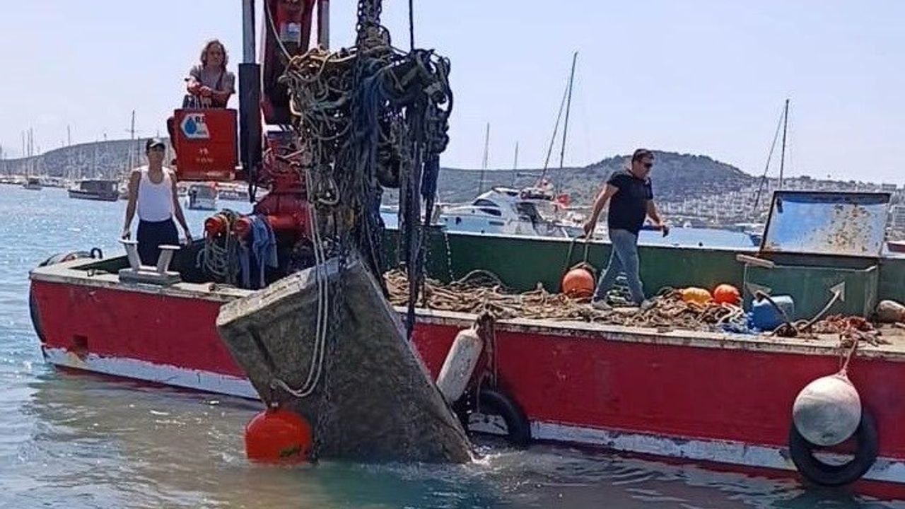 Muğla’nın Bodrum ilçesinde düzenlenen temizlik çalışmasında 130 ton tonoz ve çeşitli atıklar çıkarıldı.