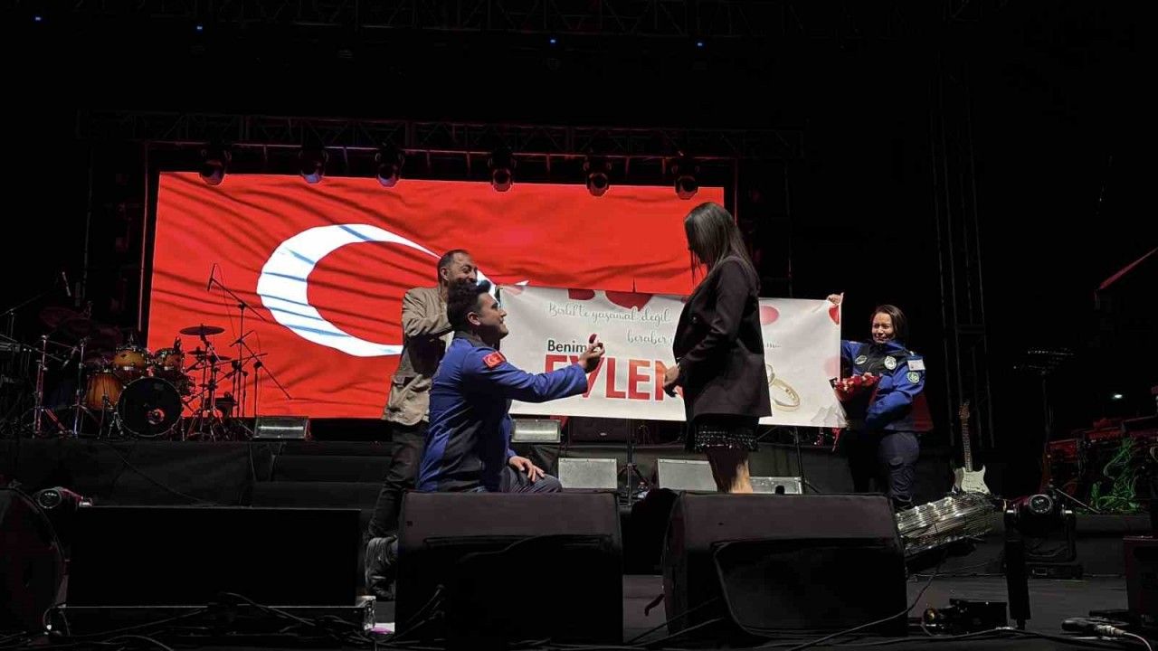 Bolu’da 19 Mayıs Atatürk’ü Anma, Gençlik ve Spor Bayramı etkinlikleri kapsamında düzenlenen konser öncesi zabıta personeli, binlerce kişinin önünde kız arkadaşına evlilik teklif etti.