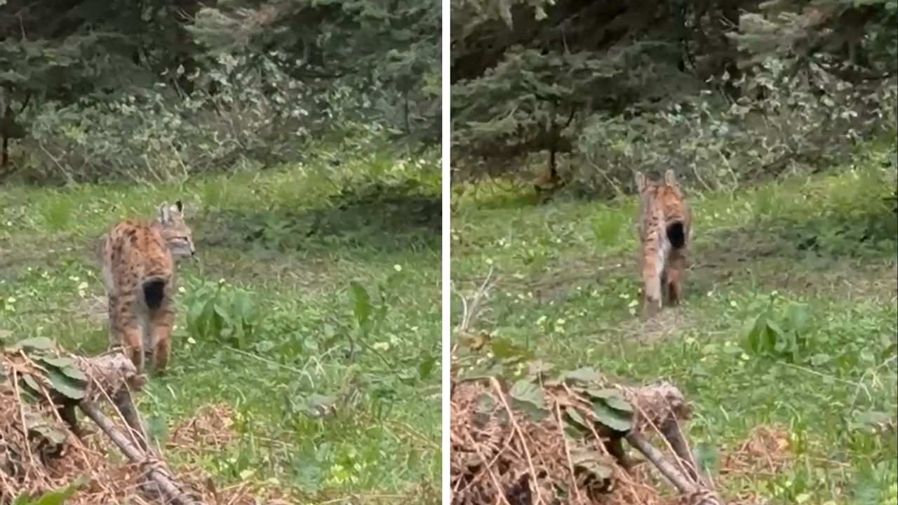 Bolu’nun Mengen ilçesinde, nesli tehdit altındaki vaşak ormanlık alanda gezinirken görüntülendi.