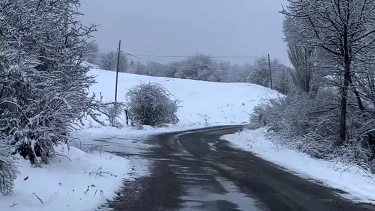 Bolu'nun en yüksek rakımlı ilçesi olan Gerede'de nisan ayında yağan kar etrafı beyaza bürüdü.