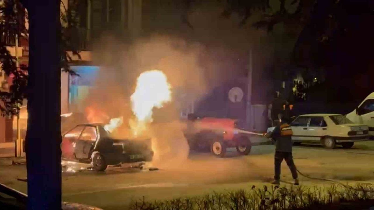 Bolu'nun Göynük ilçesinde park halindeki bir otomobil çıkan yangında kullanılamaz hale geldi.