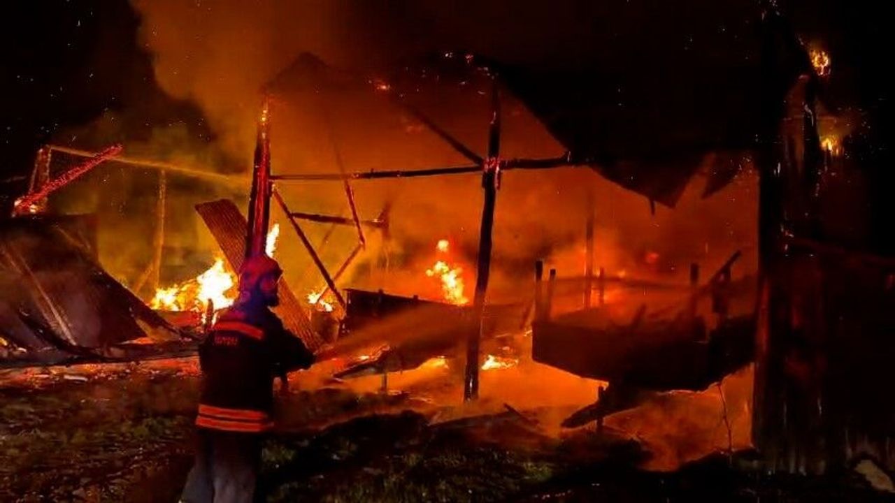 Bolu'nun Mudurnu ilçesinde yıldırım düşmesi sonucu bir samanlık ve traktör alev alev yandı.