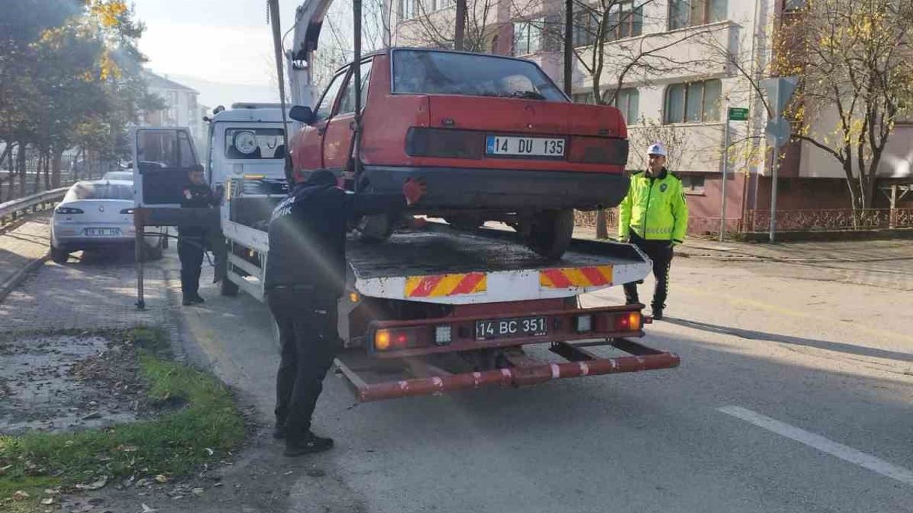 Bolu’da şehir merkezinde uzun süredir park halinde bırakılan hurda araçlar, trafik akışını engellediği gerekçesiyle trafik polisi ekipleri tarafından toplanmaya başlandı.