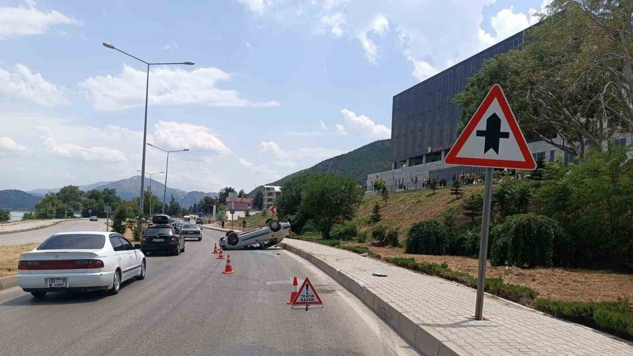 Isparta’nın Eğirdir ilçesinde, sürücüsünün virajda direksiyon hakimiyetini kaybetmesi sonucu bordür taşına çarpan otomobil takla attı. Kazada sürücü yaralandı.