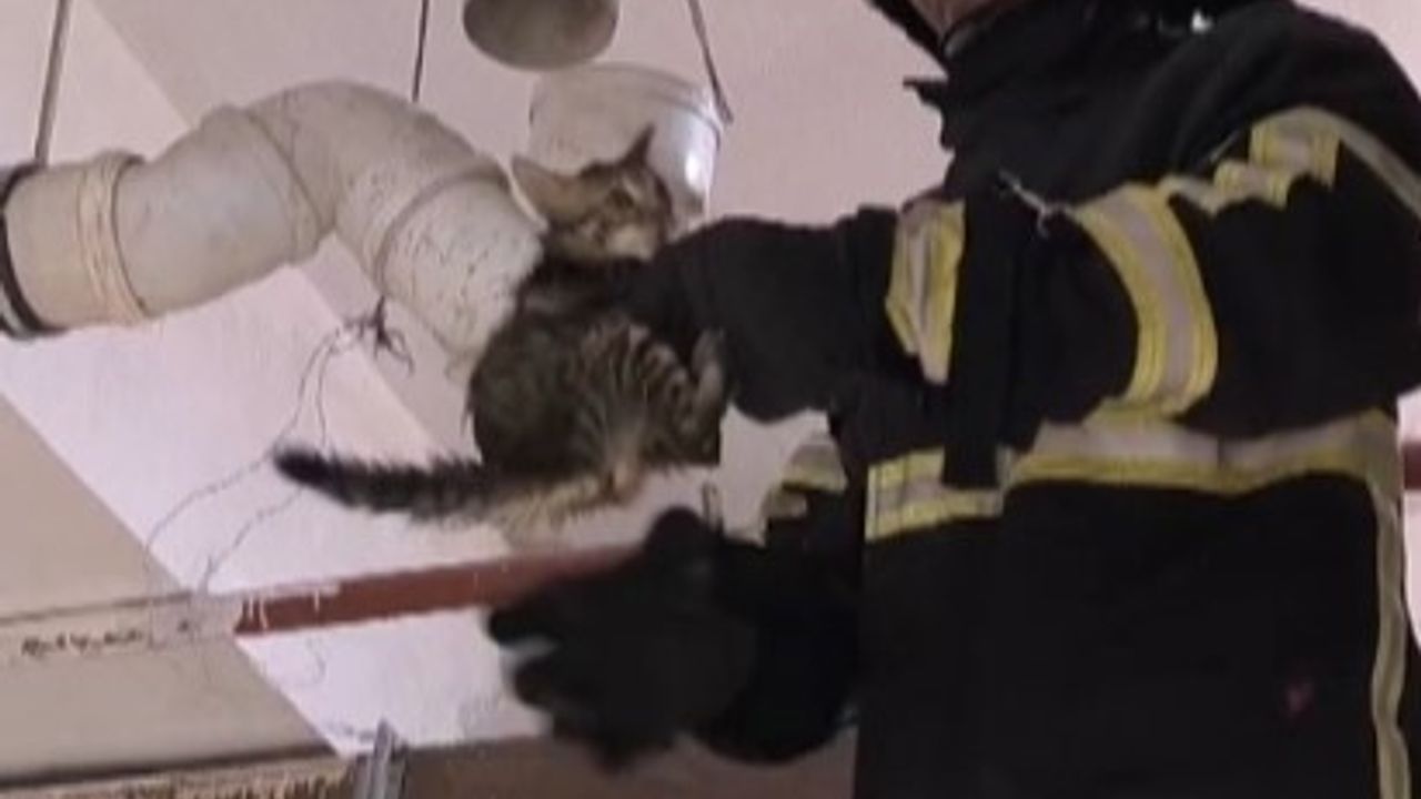 Hatay’ın Reyhanlı ilçesinde boru içinde mahsur kalan yavru kediyi, itfaiye ekipleri kurtardı.