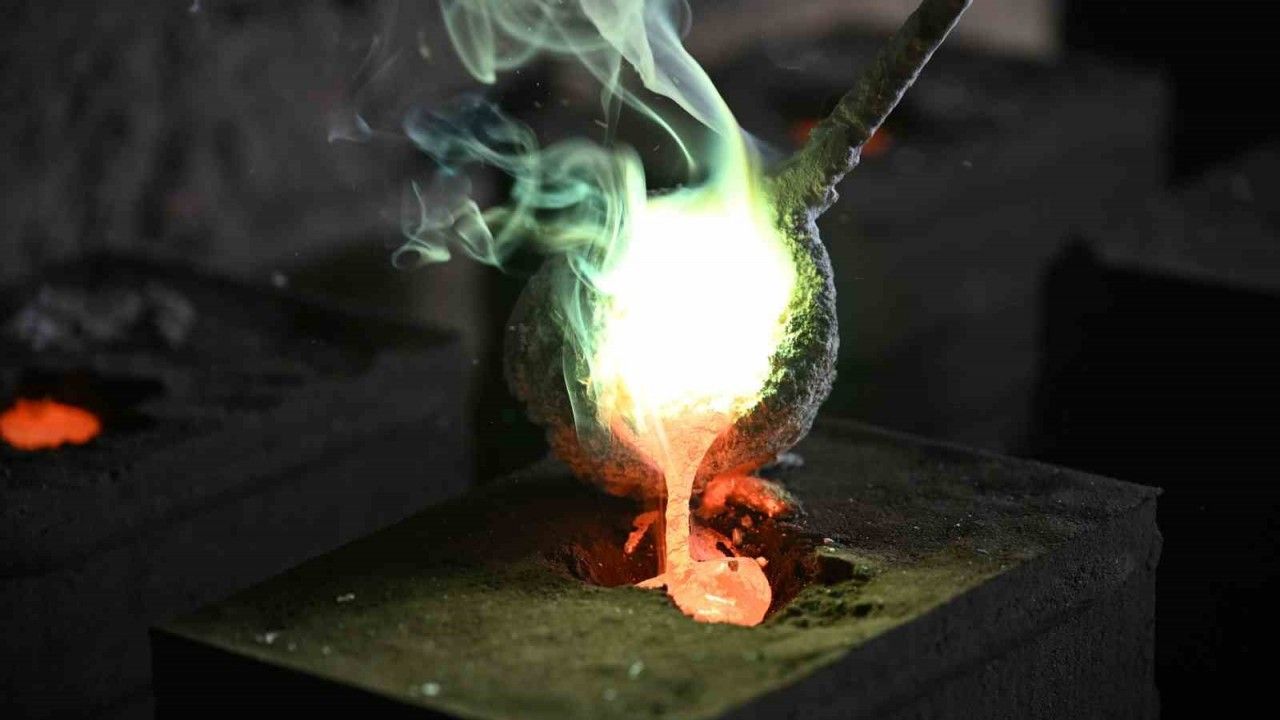 Düzgün, süreci şöyle anlattı: "İlk önce ’göbek’ dediğimiz maşaları hazırlıyoruz. Ardından Konya’da özel olarak yaptırdığım kalıplara, erittiğimiz sarı malzemeyi döküyoruz."