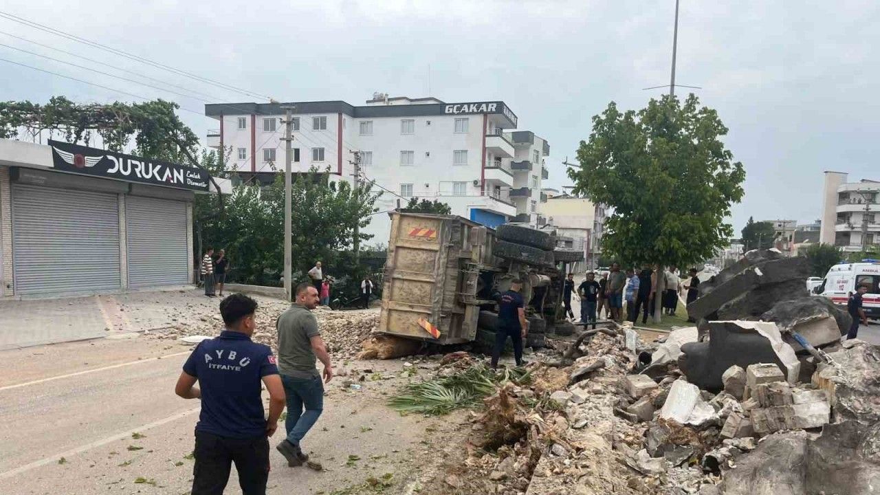 Osmaniye’nin Kadirli ilçesinde direksiyon hakimiyetini kaybeden sürücünün kullandığı kamyon orta refüje çarparak devrildi. Kazada kamyon şoförü yaralandı.