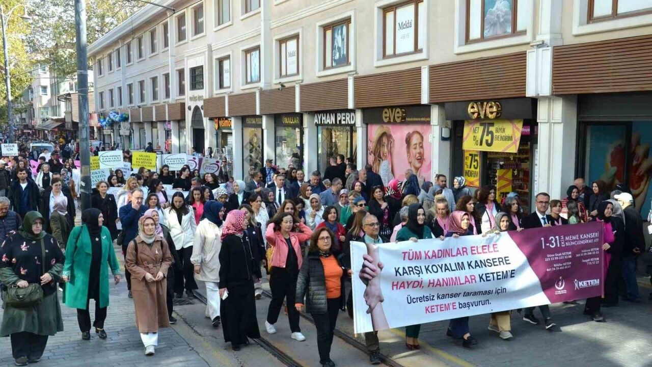 Sağlık Bakanlığı tarafından ülke genelinde yürütülen 1-31 Ekim Meme Kanseri Farkındalık Ayı etkinlikleri kapsamında gerçekleştirilen etkinlikte Cumhuriyet Caddesi’nden Zafer Meydanı’na doğru yoğun katılımla gerçekleşen bir yürüyüş yapıldı. Bursa Büyükşehir Belediyesi Bandosu’nun marşlarıyla eşlik ettiği yürüyüşe; İl Sağlık Müdürlüğü Halk Sağlığı Hizmetleri Başkanı Dr. İrfan Oğuz, Kamu Hastaneleri Başkanı Dr. Melike Savaş, sağlık çalışanları, sivil toplum kuruluşları, kanser dernekleri ve öğrenciler katıldı. Vatandaşların yoğun ilgiyle takip ettiği etkinlikte, lise öğrencileri ellerinde tuttuğu meme kanserinin simgesi olan dev ‘pembe kurdele’ ile cadde boyunca yürüyüşe eşlik etti.