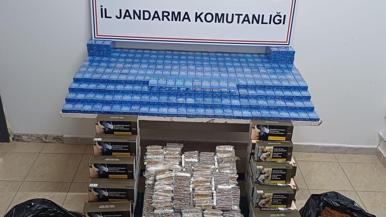 Yapılan aramalarda; paketlenmiş halde 15 bin 380 adet içime hazır sigara, 8 bin 400 adet sarı filtreli içime hazır sigara, 8 bin 800 adet boş makaron ile 22 kilogram kıyılmış tütün bulundu.