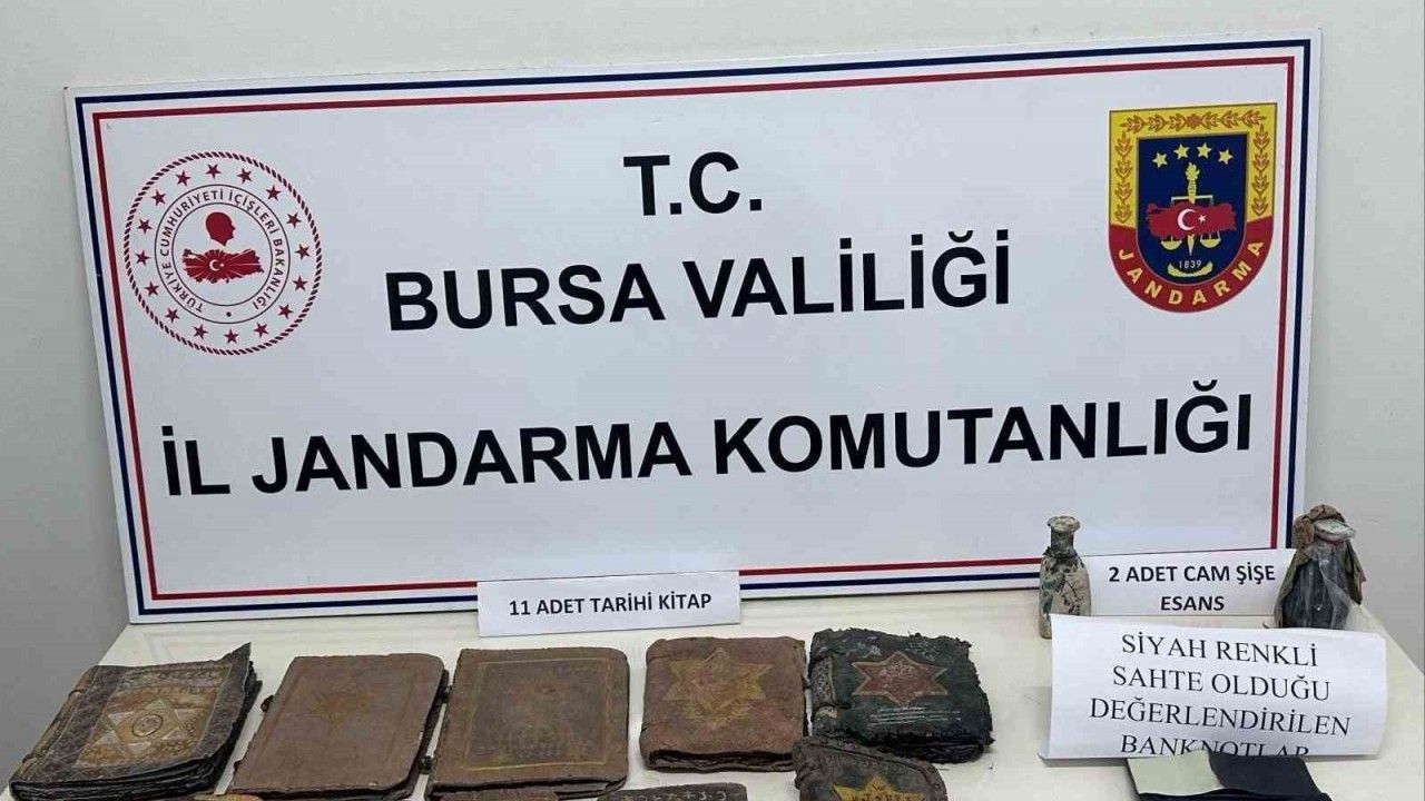Bursa’nın İnegöl ilçesinde jandarma tarafından bir köy evine yapılan operasyonda çok sayıda altın yazmalı kitap ile siyah dolar banknotlar ele geçirildi. Bir kişi gözaltına alındı.
