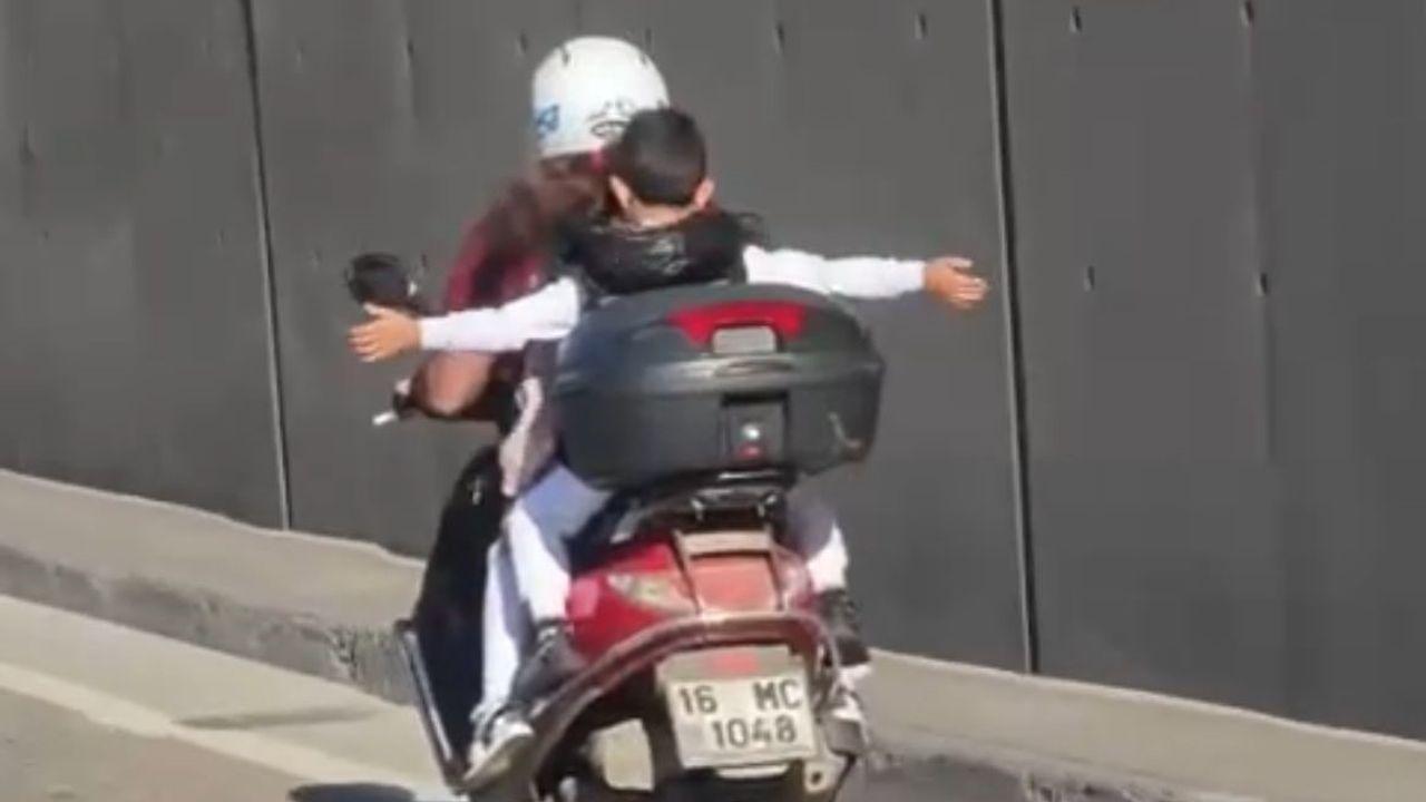 Olay, Yıldırım ilçesi Erikli mevki Ankara Yolu Caddesi üzerinde meydana geldi. Edinilen bilgiye göre, trafiğe çıkan adam, arkasına herhangi bir ekipman bulundurmadan aldığı iki çocukla trafiğe çıktı. Sürücü seyir halindeyken, arkasındaki çocuklar ise bulunduğu durumu oyuna çevirip ellerini açarak yolculuk etti. Tehlikeli yolculuk kilometrelerce sürerken, o anlar trafikteki başka sürücülerin kamerasına yansıdı.