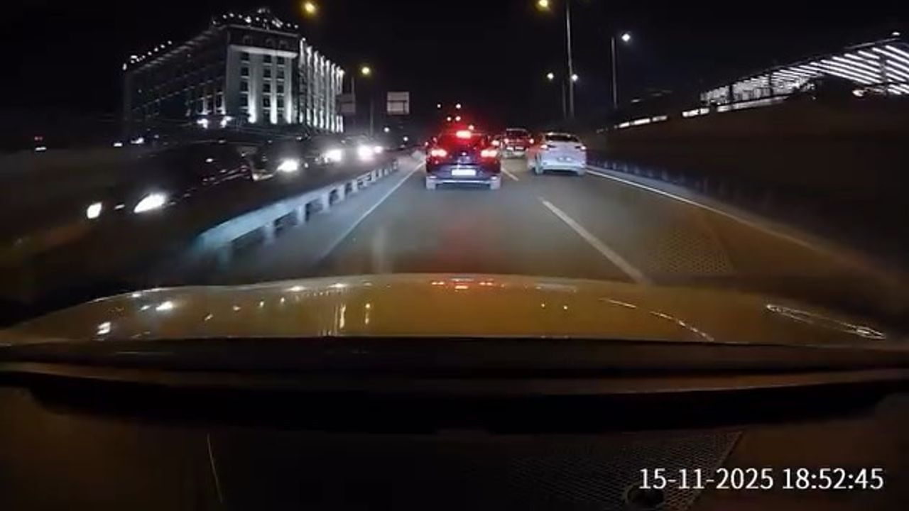 Bursa’da bir otomobil, sürücü batçıkta araçların durduğunu fark etmeyince en arkadaki otomobilin üzerine çıktı. Yaşanan zincirleme kaza, karşı şeritten gelen otomobilin araç kamerasına yansıdı.