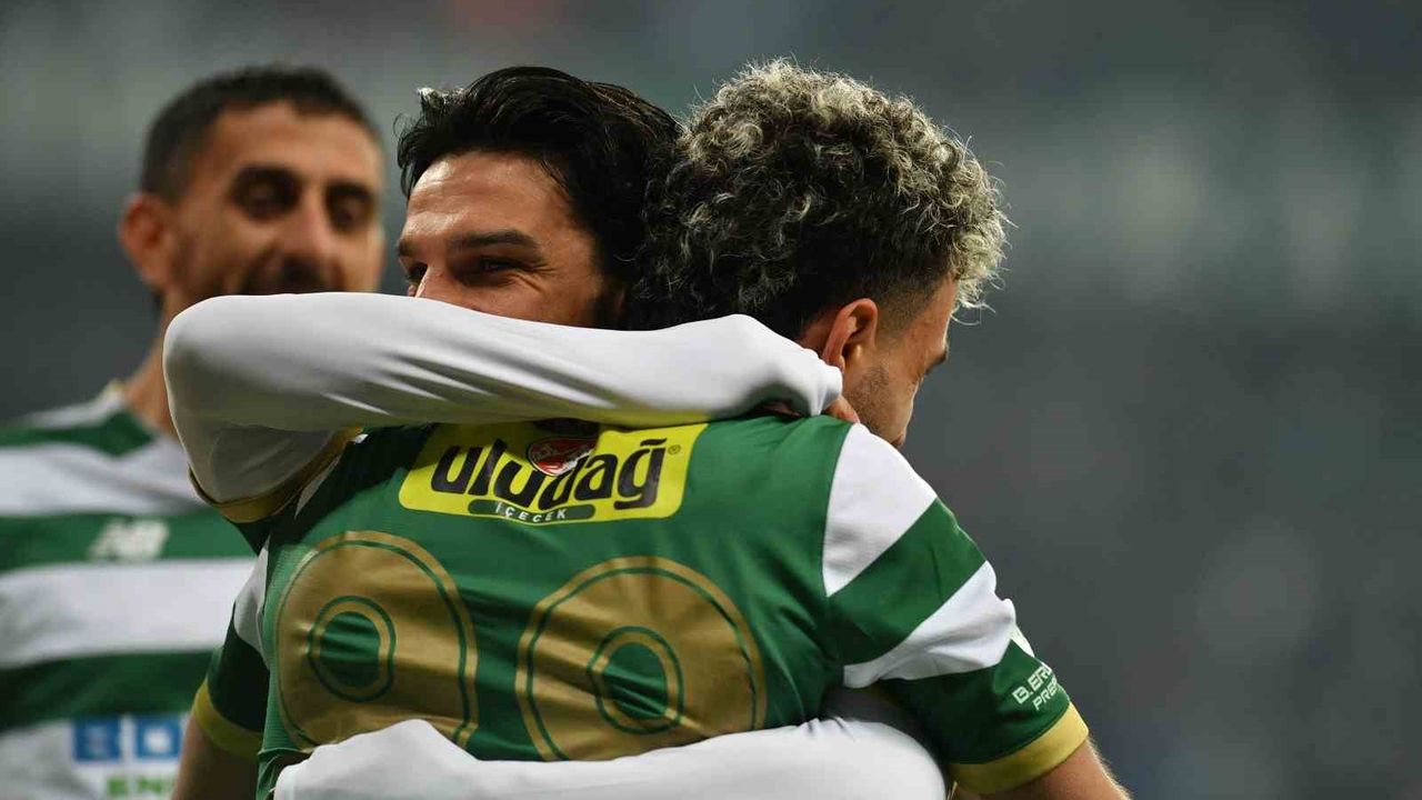 Hafta içi oynanmasına rağmen 30 bin 340 Bursasporlu taraftar tribünleri doldurdu. Yeşil-beyazlılar, 90 dakika boyunca takımlarına büyük destek vererek galibiyette önemli rol oynadı.