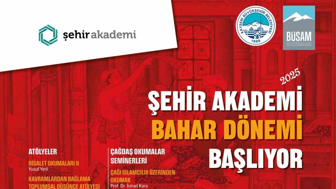 Kayseri Büyükşehir Belediyesi bünyesinde şehrin düşünce ve fikir hayatına katkı sağlamak amacıyla faaliyet gösteren BÜSAM tarafından düzenlenecek Şehir Akademi 2025 Bahar Dönemi kayıtları devam ediyor.