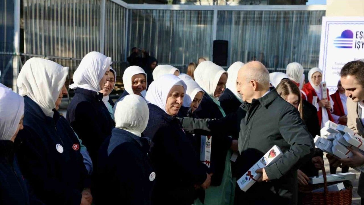 Eşit İşyeri Projesi kapsamında kadınlara sağlanan eşit iş imkanı dolayısıyla teşekkür eden işletme çalışanlarından Gülşen Yılmaz, ‘’Üretim şefiyim. Firma olarak 300’e yakın bayan personelle çalışıyoruz. Tüm kadınlarımızın Kadınlar Günü’nü kutluyorum. Çok güzel bir çalışma. Bütün kadınlarımız için güzel bir davranış. Belediye başkanımıza teşekkür ediyoruz" dedi.