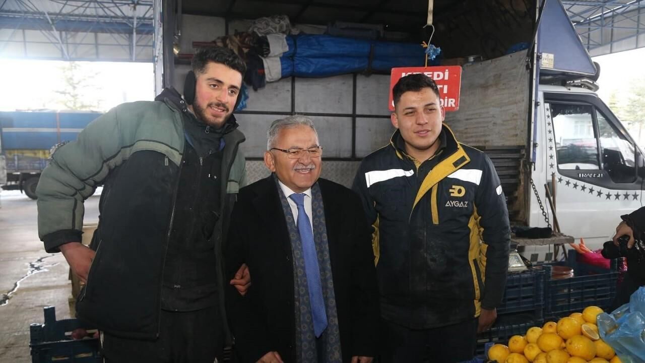 Pazarda alışveriş yapan vatandaşlarla yakından ilgilenen Büyükkılıç, pazar yerinde Kayserililerin ilgi ve sevgi ile karşılaştı.