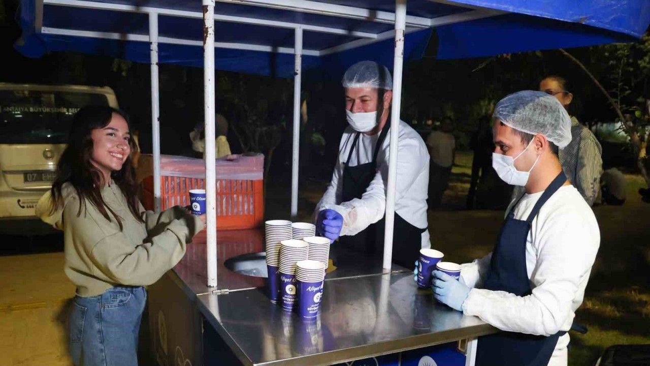Antalya Büyükşehir Belediyesi, sınav haftası başlayan Akdeniz Üniversitesi öğrencilerine sıcak çorba ikramında bulunuyor. Öğrenciler, yoğun sınav dönemi ve soğuk gecelerde ikram edilen sıcak çorba içleri ısınıyor. Çorba ikramı, 14 Kasım’a kadar her akşam 22:00-23:00 saatleri arasında Akdeniz Üniversitesi Merkez Kütüphanesi önünde devam edecek.