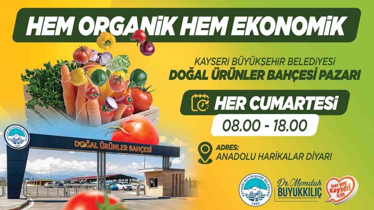 Kayseri Büyükşehir Belediyesi bünyesinde hizmet veren Anadolu Harikalar Diyarı içerisinde yer alan hem organik hem de ekonomik Doğal Ürünler Bahçesi Pazarı, 26 Temmuz Cumartesi günü kapılarını açıyor.