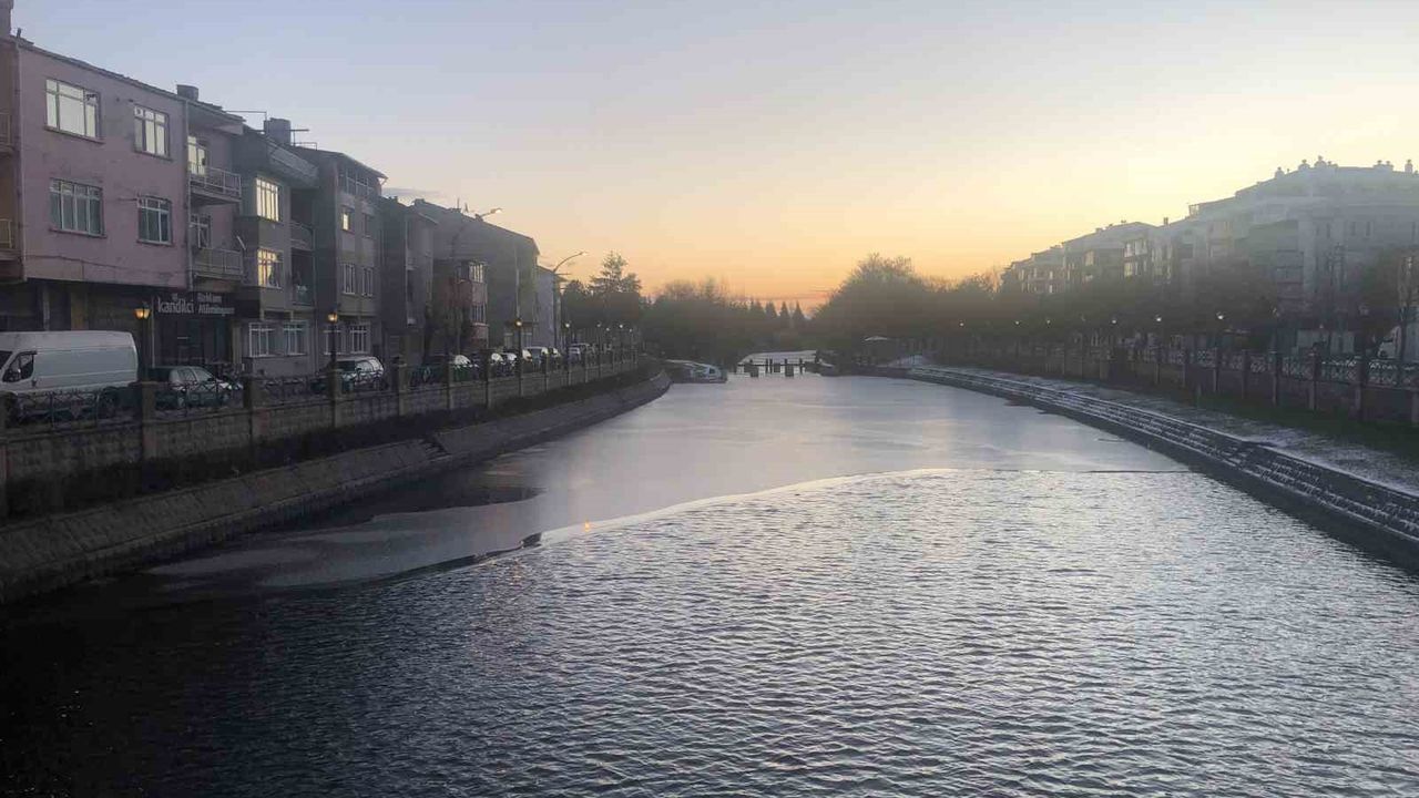 Eskişehir'de dondurucu soğukların etkisiyle Porsuk Çayı'nın yüzeyi buzla kaplandı. Sabahın ilk ışıklarıyla birlikte ortaya çıkan 'yarısı buz, yarısı su' görüntüsü, kenti adeta bir kartpostala dönüştürdü.