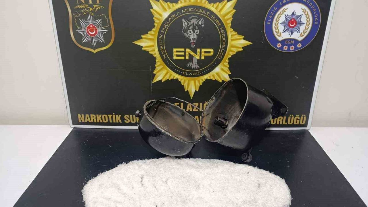 Elazığ Cumhuriyet Başsavcılığı koordinesinde İl Emniyet Müdürlüğü Narkotik Suçlarla Mücadele ekipleri tarafından uyuşturucu ve uyarıcı madde ticareti, kullanımı ve sevkiyatının engellenmesine yönelik çalışmalar sürüyor. Bu çerçevede ekipler tarafından Karakoçan'da bir yolcu otobüsü durduruldu. Narkotik köpeği ile yapılan aramada, bir yolcuya ait buzdolabı kompresör motoru içerisine zulalanmış 617 gram metamfetamin maddesi ele geçirildi. Şüpheli uyuşturucu madde ticari yapmak suçundan gözaltına alındı. Emniyette ifadesi alınan şüpheli, çıkarıldığı mahkemece tutuklanarak cezaevine gönderildi.