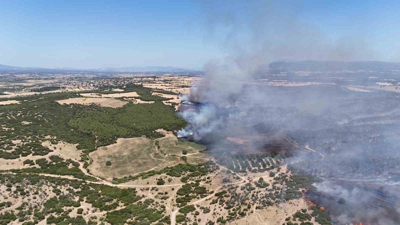 Konuyla ilgili Çanakkale Valiliği’nden yapılan yazılı açıklamada, "Ezine ilçesi Çetmi köyü mevkiinde, 24 Haziran 2025 Salı (bugün) günü, saat 13.45 sıralarında yangın meydana gelen yangına, 7 uçak ve 6 helikopter ile havadan, 23 arazöz, 4 dozer ve 182 müdahale personel ile karadan söndürme faaliyeti devam etmektedir. An itibariyle yerleşim yerlerini tahliyeyi gerektirir bir risk bulunmamaktadır" denildi.