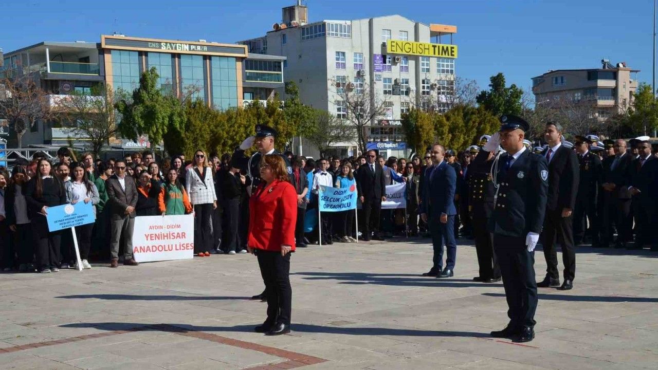 Didim Kent Meydanı’nda gerçekleştirilen çelenk koyma törenine Didim Kaymakamı Can Kazım Kuruca, Didim Garnizon Komutanı Erkut Arslan, Didim Belediye Başkanı Hatice Gençay, Didim Cumhuriyet Başsavcısı Anıl Altay, Muharip Gaziler Derneği Didim temsilcisi Aydın Öztürk, kurum müdürleri, siyasi parti temsilcileri, askeri erkan ve öğrenciler katıldı. İlçe protokolünün çelenk sunumunun ardından, bir dakikalık saygı duruşunda bulunuldu, akabinde İstiklal Marşı okundu. Çelenk sunma töreninin ardından gerçekleştirilen kutlamalar, kültür merkezinde devam etti. Selçuk Özsoy Ortaokulu tarafından gerçekleştirilen kutlamalar kapsamında saygı duruşunda bulunuldu, ardından İstiklal Marşı okundu.