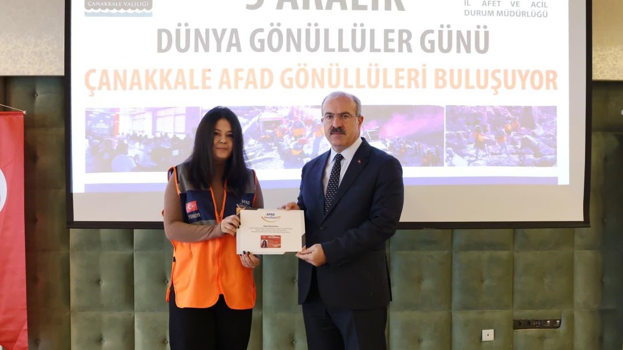 Çanakkale'de 5 Aralık Dünya Gönüllüler Günü etkinlikleri çerçevesinde Deniz Polisevinde düzenlenen törenle destek AFAD gönüllülerine kimlik kartları teslim edildi. Törende, AFAD gönüllüleri bir araya geldi. Yapılan konuşmalar ve tanıtım filminin izlenmesinin ardından Vali Doç. Dr. Ömer Toraman, AFAD gönüllülerine kimlik kartlarını takdim etti. Gönüllülere emekleri ve katkıları nedeniyle teşekkür eden Vali Toraman, gönüllülük sistemine katılmak isteyen tüm vatandaşları AFAD Gönüllülük Platformu üzerinden kayıt olmaya davet etti.