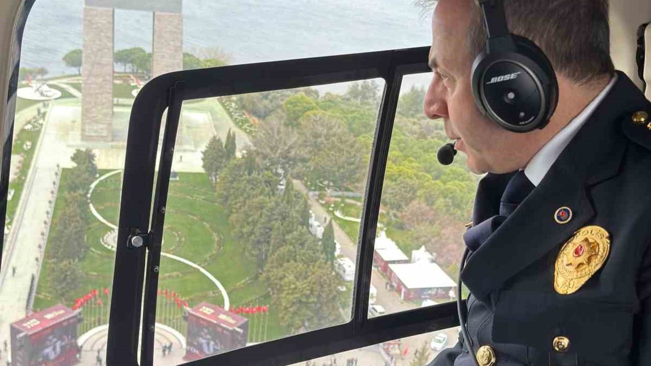 Çanakkale İl Emniyet Müdürü Kenan Kurt, Çanakkale Deniz Zaferi’nin 110. kutlamaları için alınan tedbirleri havadan inceledi.