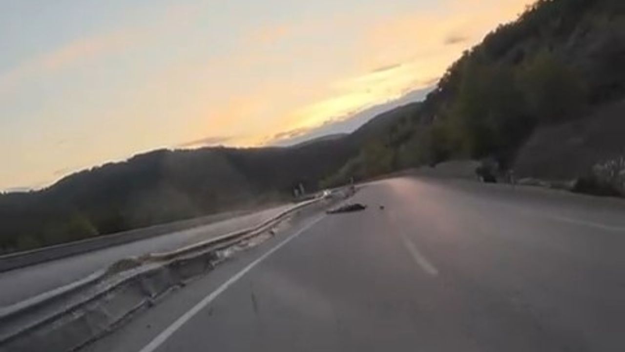 Çanakkale’de trafikte seyir halindeki motor sürücüsü Ahmet Can Öztekin(23), virajı alamayarak kaza geçirdi. O anlar başka bir motor sürücüsünün kask kamerasına anbean böyle yansıdı. Sürücünün ağır yaralı olduğu öğrenildi.