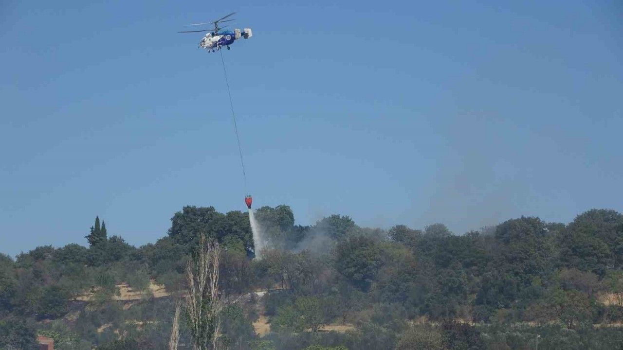 Çanakkale merkeze bağlı Erenköy’de yerleşim yerlerine yakın bahçe ve tarım arazilerinde çıkan yangın, ekiplerin karadan ve havadan müdahalesiyle kontrol altına alındı.