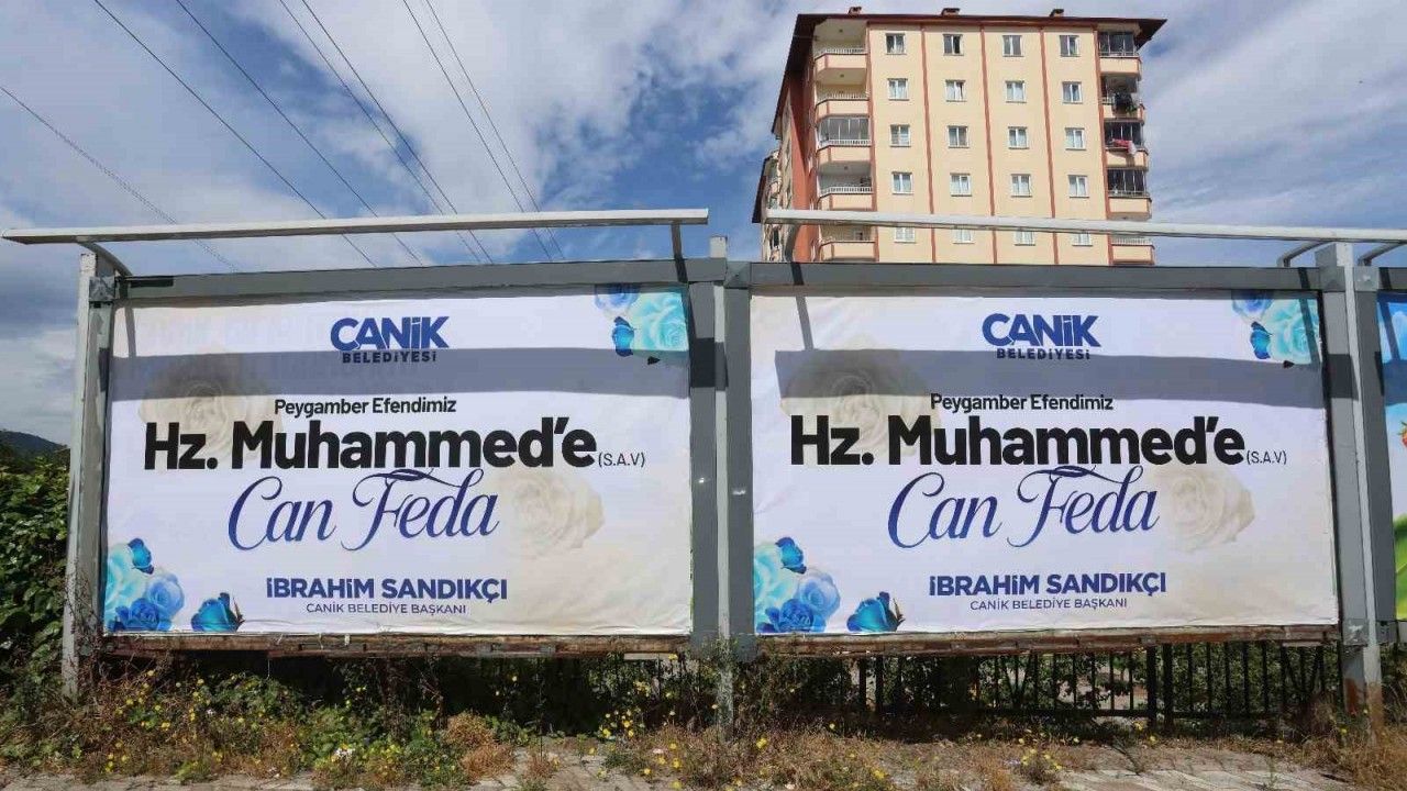 Samsun’un Canik Belediyesi, Peygamber Efendimiz Hz. Muhammed’e yönelik hakaret içeren karikatürleri kınayarak ilçenin çeşitli noktalarına, "Hz. Muhammed’e Can Feda" yazılı afişler astı.