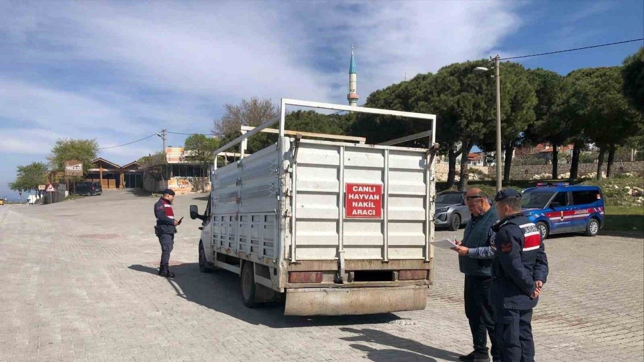 Aydın’ın Kuşadası ilçesinde jandarma ekiplerince canlı hayvan taşıyan araçlar ve hayvanlar kontrol edildi.