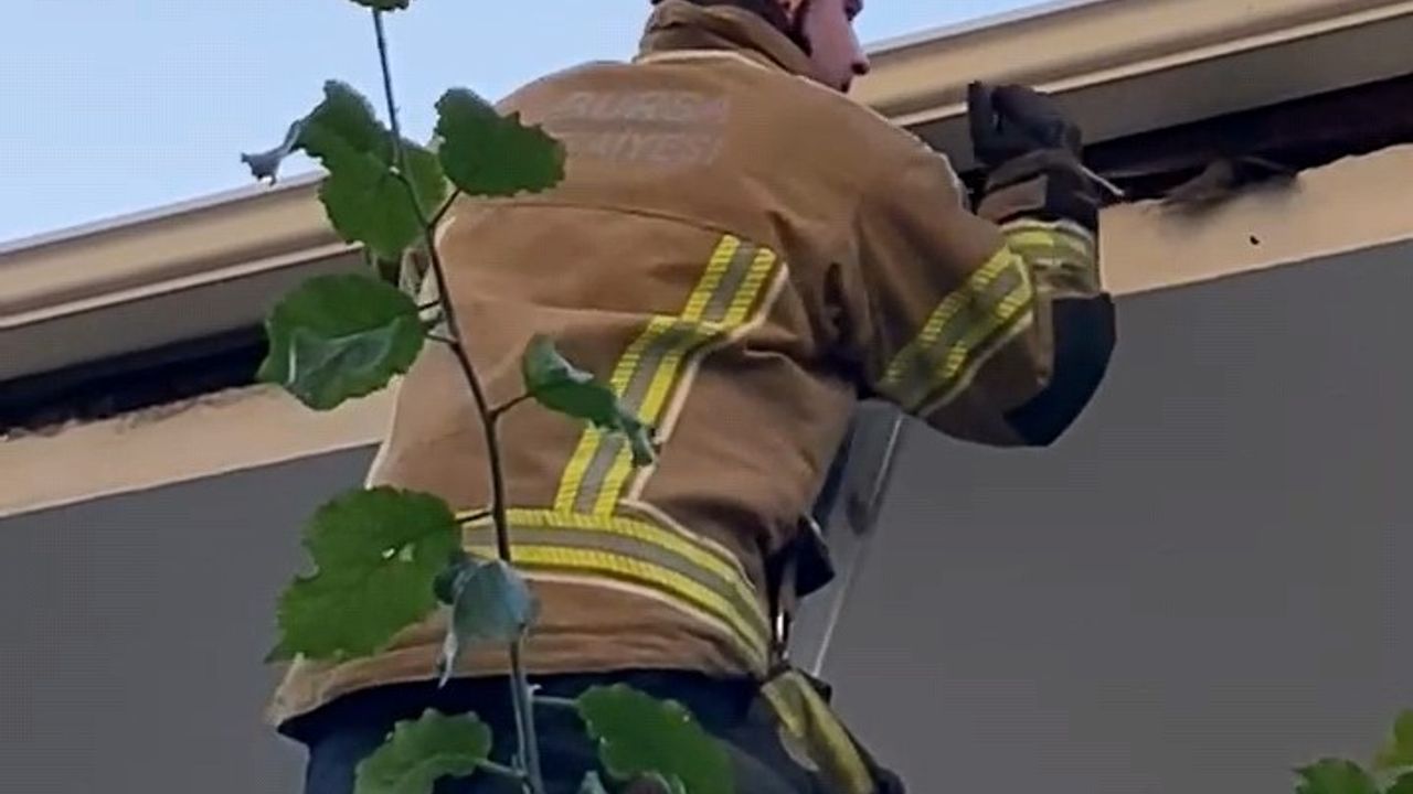 Olay, İnegöl Fatih Mahallesi Özbey Sokak’ta bulunan 2 katlı bir evin çatısında meydana geldi. Ev sakinleri, çatıdaki yağmur suyu kanalından kuş sesi geldiğini fark etti. Durumun fark edilmesi üzerine itfaiye ekiplerine bilgi verildi.