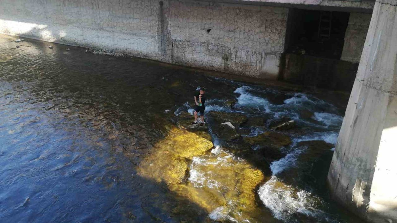 Gümüşhane’de Harşit Çayı’na düşen topunu almak isterken mahsur kalan 13 yaşındaki çocuk, itfaiye ekiplerince kurtarıldı.